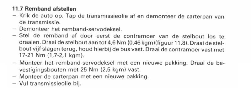Ik heb zelf nooit problemen gehad met de remband, en heb die nog nooit opnieuw hoeven stellen (en dat terwijl de auto bijna 400.000 km had gelopen toen hij weg ging). Ik heb daarom even wat in de boeken geneusd, en hieronder staat het resultaat: