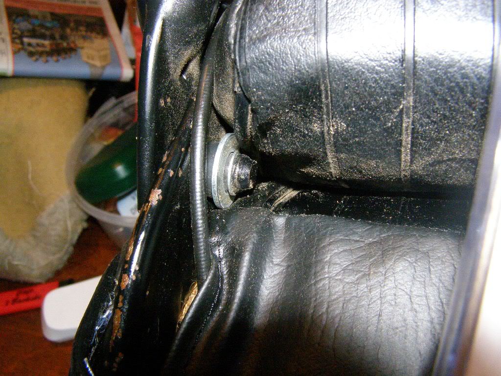 Voorzichtig de leuning over de zitting schuiven. En vulring met borgring plaatsen en ontgrendelingskabel weer inhaken