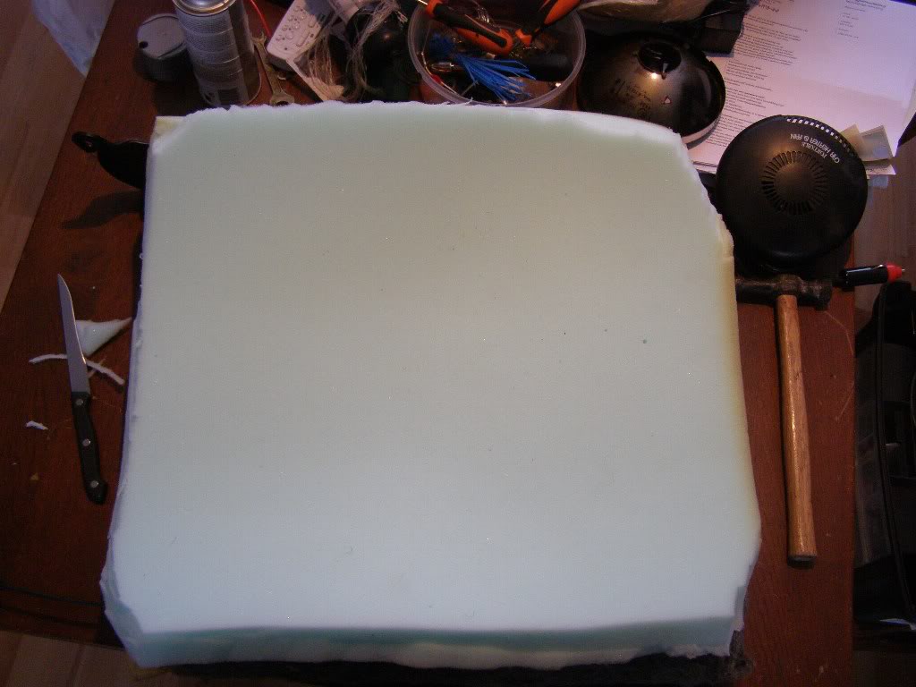 Ook nu weer, schuim op maat snijden en met spuitlijm vastplakken.