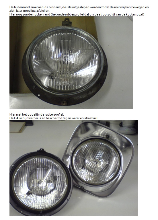 Als je een complete polo-koplamp in het kadett-huis past dan is je koplamphuis niet meer waterdicht. Dan heb je afwatering nodig en moet je het gloeilampje afdekken met een rubber.