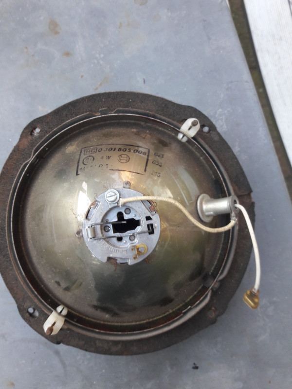 Zit gemonteerd op originele wijze in de koplamp dus met functionerend stelmechanisme.